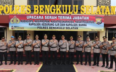 BENGKULU SELATAN – Kepolisian Resor (Polres) Bengkulu Selatan menggelar Upacara Serah Terima Jabatan (Sertijab) sejumlah Pejabat Utama, Kamis (31/07/2025) pagi, bertempat di lapangan utama Polres Bengkulu Selatan. Upacara dipimpin langsung oleh Kapolres Bengkulu Selatan, AKBP Awilzan, S.I.K., M.H dan dihadiri oleh jajaran pejabat utama, Bhayangkari, serta personel Polres dan Polsek jajaran. Upacara ini menjadi tindak…