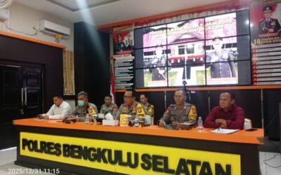 BENGKULU SELATAN – Kepolisian Resor (Polres) Bengkulu Selatan secara resmi menutup tahun 2025 dengan memaparkan capaian kinerja serta evaluasi situasi keamanan dan ketertiban masyarakat (Kamtibmas) dalam Konferensi Pers Rilis Akhir Tahun yang digelar di Aula Command Center Mapolres Bengkulu Selatan, Rabu (31/12/2025). Dalam pemaparannya, Polres Bengkulu Selatan mencatat adanya dinamika kriminalitas yang cukup fluktuatif sepanjang…