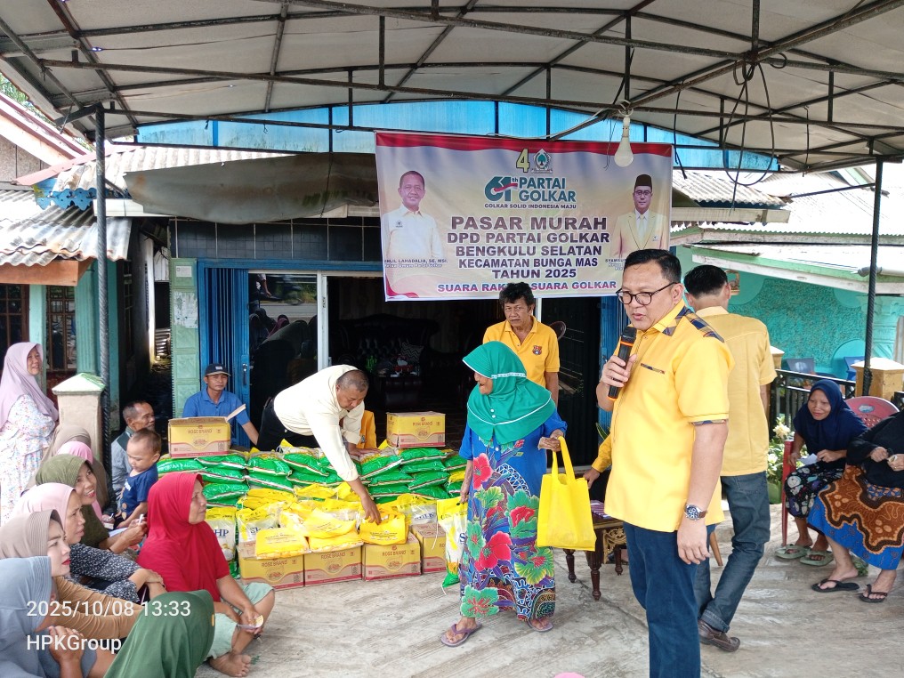 BENGKULU SELATAN – Dalam rangka memperingati Hari Ulang Tahun (HUT) Partai Golkar ke-61 yang jatuh pada tanggal 20 Oktober mendatang, Dewan Pimpinan Daerah (DPD) Partai Golkar Kabupaten Bengkulu Selatan menggelar kegiatan sosial bertajuk Bazar Murah di beberapa titik wilayah kabupaten.