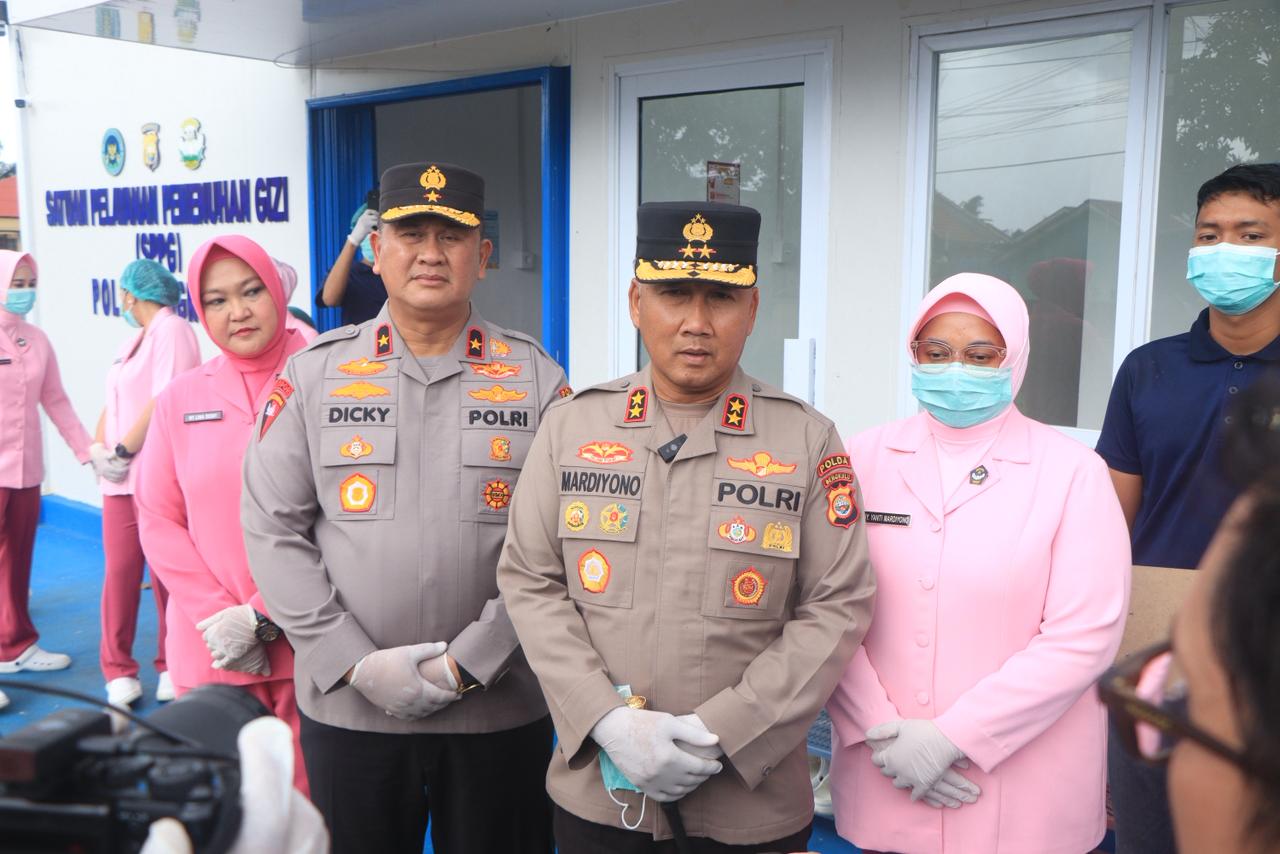 BENGKULU – Kapolda Bengkulu Irjen Pol. Mardiyono, S.I.K., M.Si. bersama Ketua Bhayangkari Daerah Bengkulu meninjau pelaksanaan program Makan Bergizi Gratis (MBG) yang digelar oleh Satuan Pelayanan Pemenuhan Gizi (SPPG) Polda Bengkulu di SD Negeri 75 Kota Bengkulu, Jumat (24/10/2025). Kegiatan ini turut dihadiri Wakapolda Bengkulu Brigjen Pol. Dicky Sondani S.I.K., M.H.,, Pejabat Utama Polda, serta jajaran personel Polda Bengkulu.