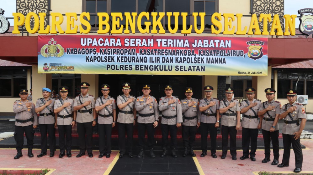 BENGKULU SELATAN – Kepolisian Resor (Polres) Bengkulu Selatan menggelar Upacara Serah Terima Jabatan (Sertijab) sejumlah Pejabat Utama, Kamis (31/07/2025) pagi, bertempat di lapangan utama Polres Bengkulu Selatan.